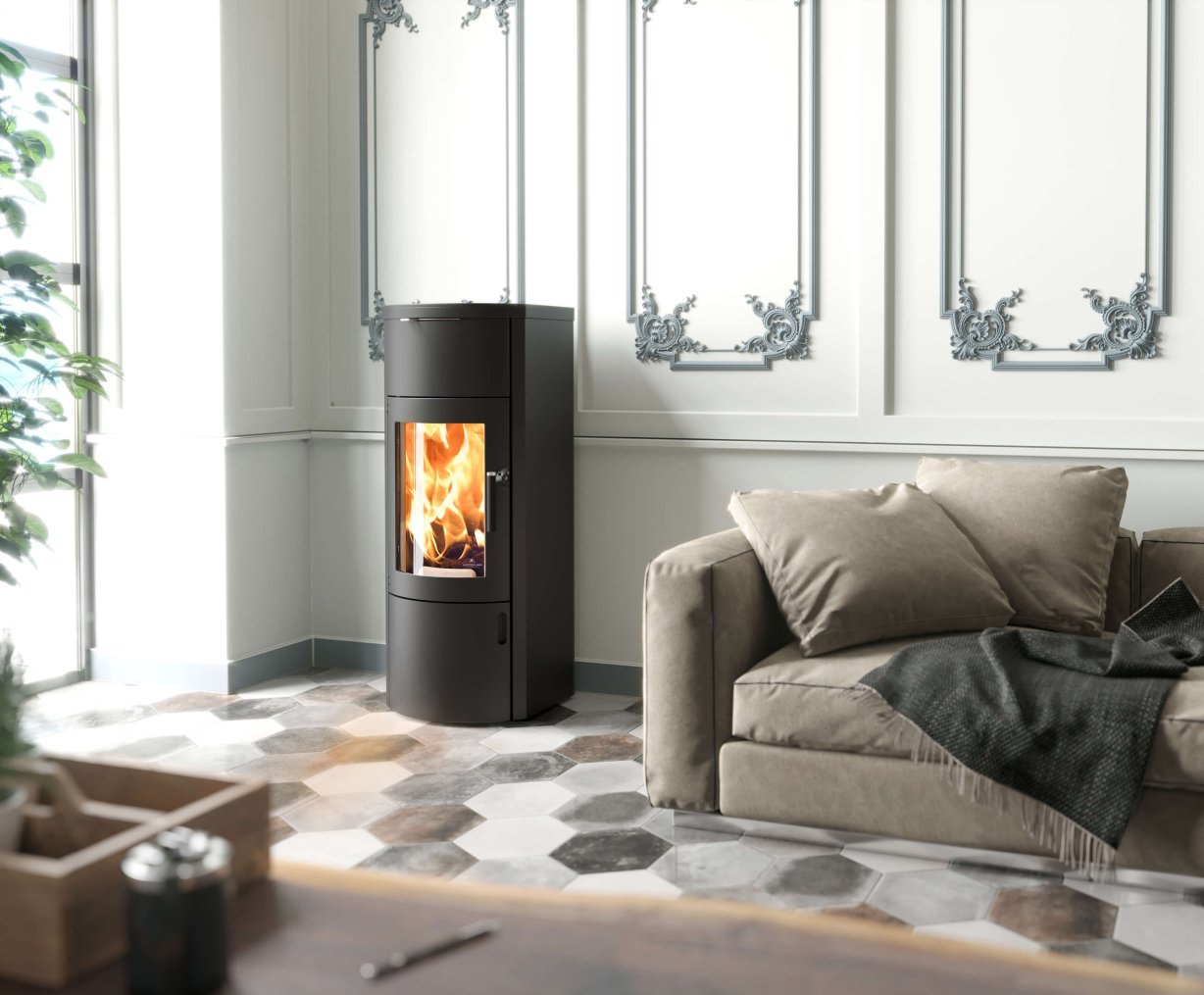 Het ontwerp van de Austroflamm Bono Xtra is modern en overzichtelijk, met strakke lijnen en een tijdloze uitstraling. De kachel is zo vormgegeven dat hij zich naadloos in verschillende interieurstijlen laat integreren, zonder visueel te overheersen. Tegelijkertijd biedt de ruime glasruit een goed zicht op het vuur, waardoor de kachel niet alleen functioneel is, maar ook bijdraagt aan een gezellige en warme sfeer. Het vlammenspel vormt een rustgevend element in de ruimte en geeft een gevoel van geborgenheid.